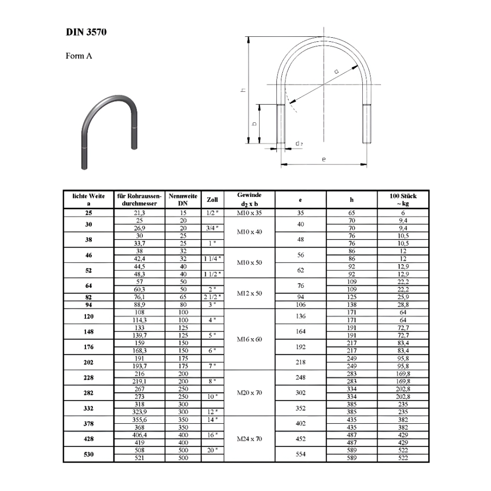 Der Rundstahlbügel nach DIN 3570 Form A ist eine zuverlässige und stabile Befestigungslösung für Rohrleitungen, Masten und Rundteile. Durch seine normgerechte Ausführung bietet er eine perfekte Passform und eignet sich ideal für Stahlbau, Rohrbrücken und industrielle Konstruktionen.