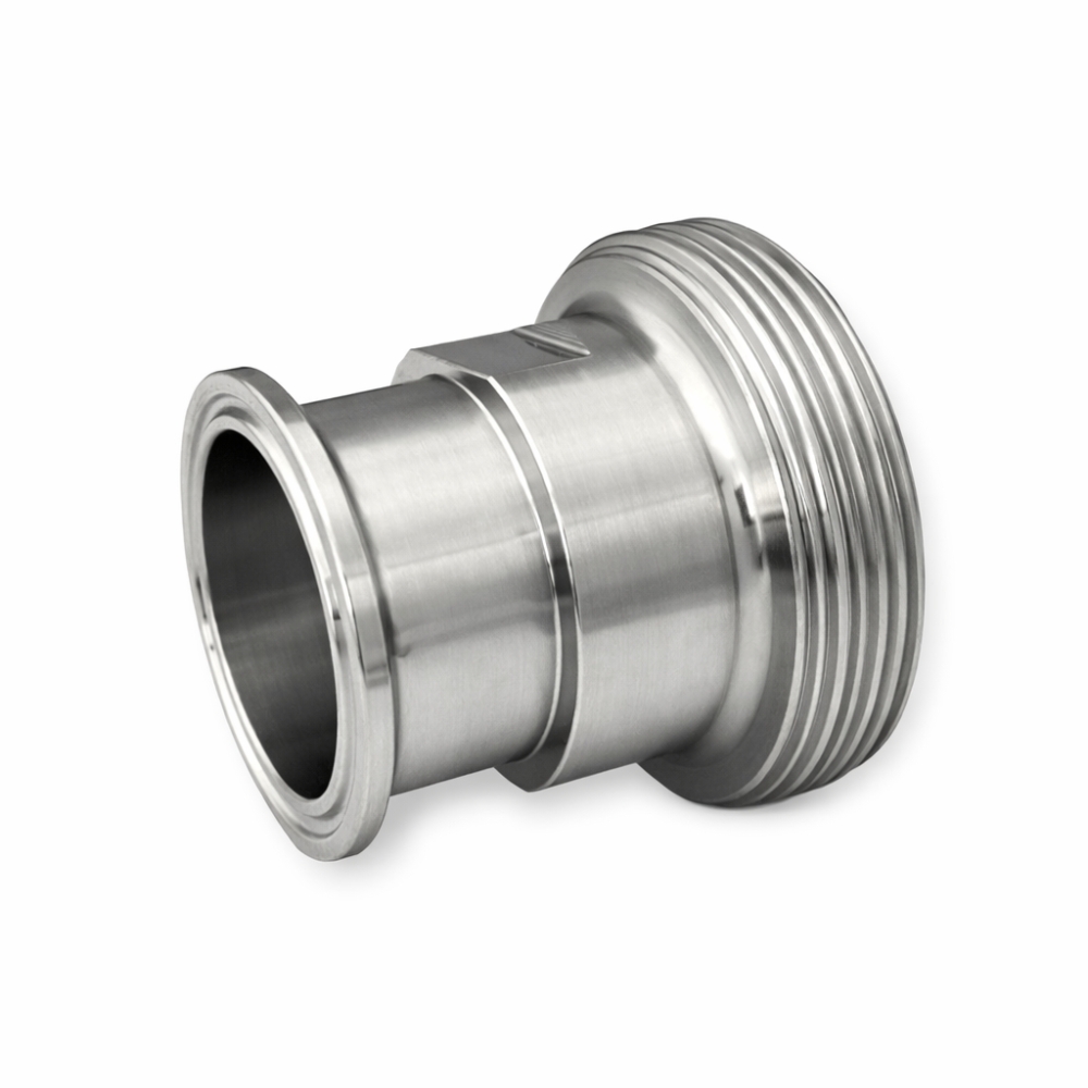 Dieses präzise gefertigte Übergangsstück verbindet eine Clamp-Kupplung nach DIN 32676 mit einem Außengewinde nach SMS 1145 (Swedish Manufacturing Standard). Es vereint zwei gängige Verbindungssysteme zu einer sicheren, hygienischen Einheit und ist speziell für anspruchsvolle Anwendungen in der Lebensmittel- und Getränketechnik ausgelegt.